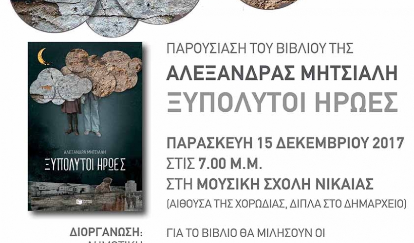 Η Δημοτική Βιβλιοθήκη Νίκαιας, ο Πολιτιστικός Οργανισμός του Δήμου Κιλελέρ και οι εκδόσεις Πατάκη διοργάνωσαν την παρουσίαση του βιβλίου της Αλεξάνδρας Μητσιάλη με τον τίτλο «Ξυπόλυτοι Ήρωες»