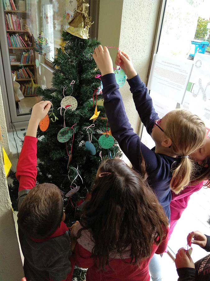 Τα παιδιά αφού παρακολούθησαν την αφήγηση παραμυθιών στη συνέχεια κατασκεύασαν στολίδια για το χριστουγεννιάτικο δέντρο της Βιβλιοθήκης με τις ευχές τους για τα Χριστούγεννα και τον καινούργιο χρόνο. Στο τέλος τα παιδιά δανείστηκαν βιβλία με θέμα τα Χριστούγεννα και την Πρωτοχρονιά.